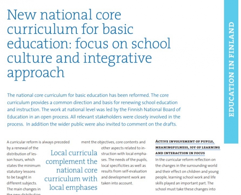 New national core curriculum for basic education: focus on school culture and integrative approach.