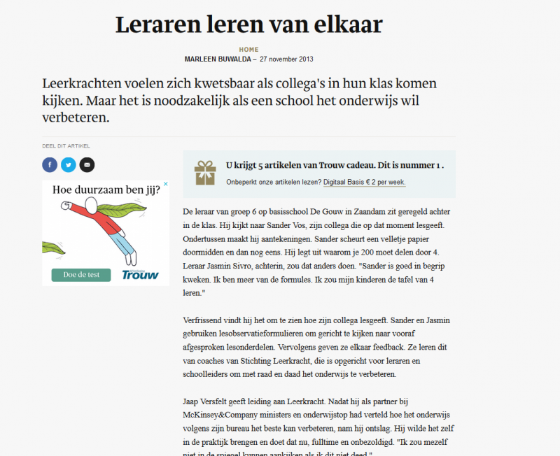 Leraren leren van elkaar. Marleen Buwalda. de Verdieping Trouw.